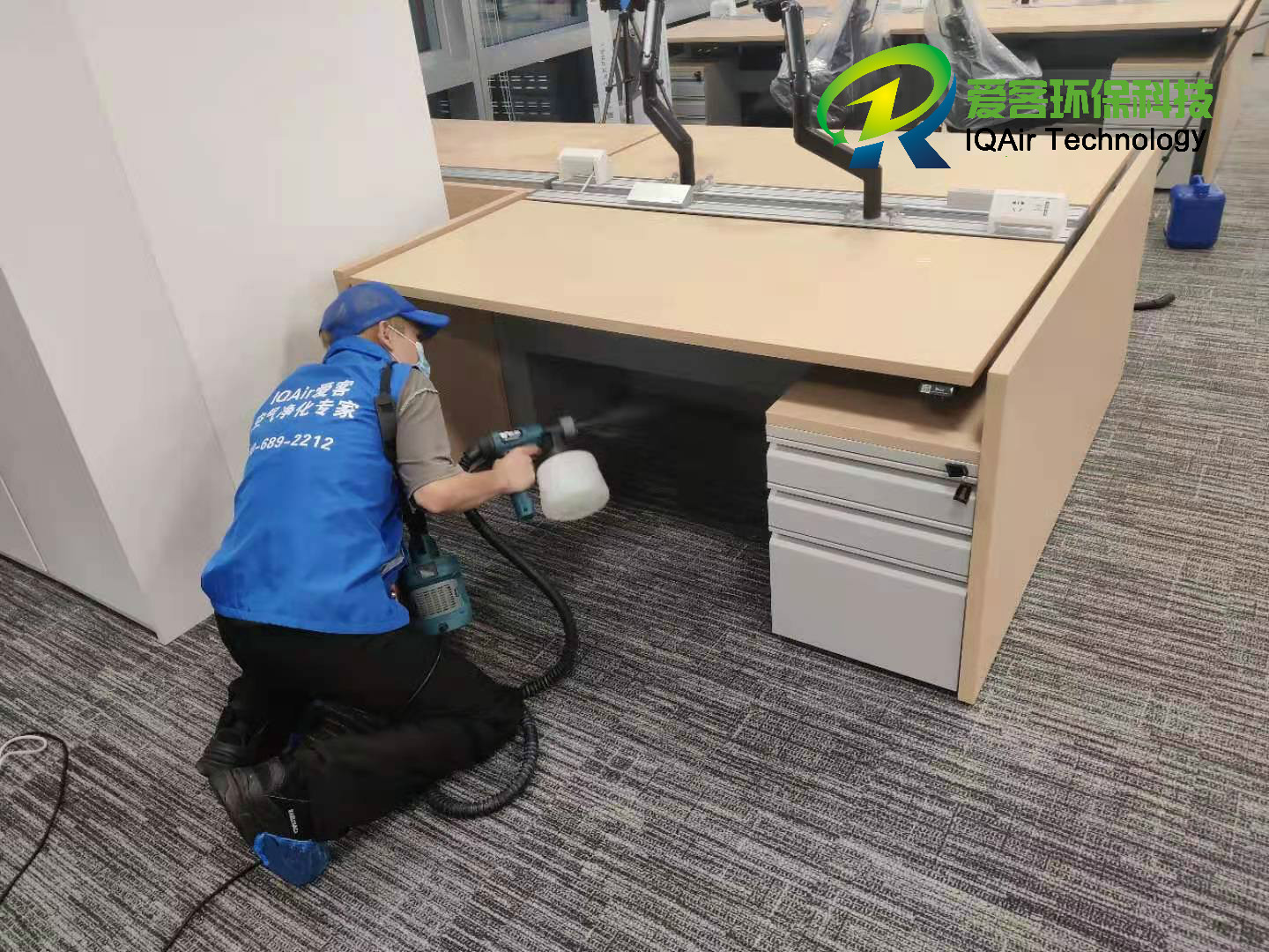項目概況:本次項目是針對申請LEED認證的公司,進行的初期空氣治理。主要為項目單位區域內的包括辦公室區域、獨立辦公室、會議室、茶水間、員工休息區、前臺以及其他區域的天花板、地面、墻面、辦公桌椅、儲物柜等多方位,使用愛洛客光觸媒360度無死角的噴涂。并選用(24組)Blueair空氣凈化機對所有區域的全覆蓋,達到持續凈化效果。