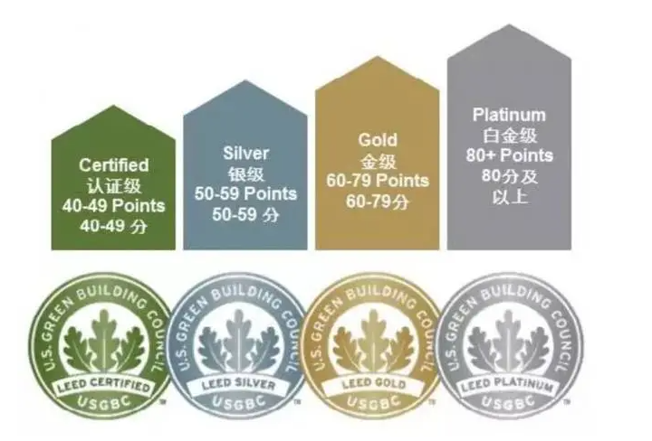 并根據每個方面的指標進行打分(總分110分),綜合得分結果,將通過評估的建筑分為白金、金、銀和認證級別。