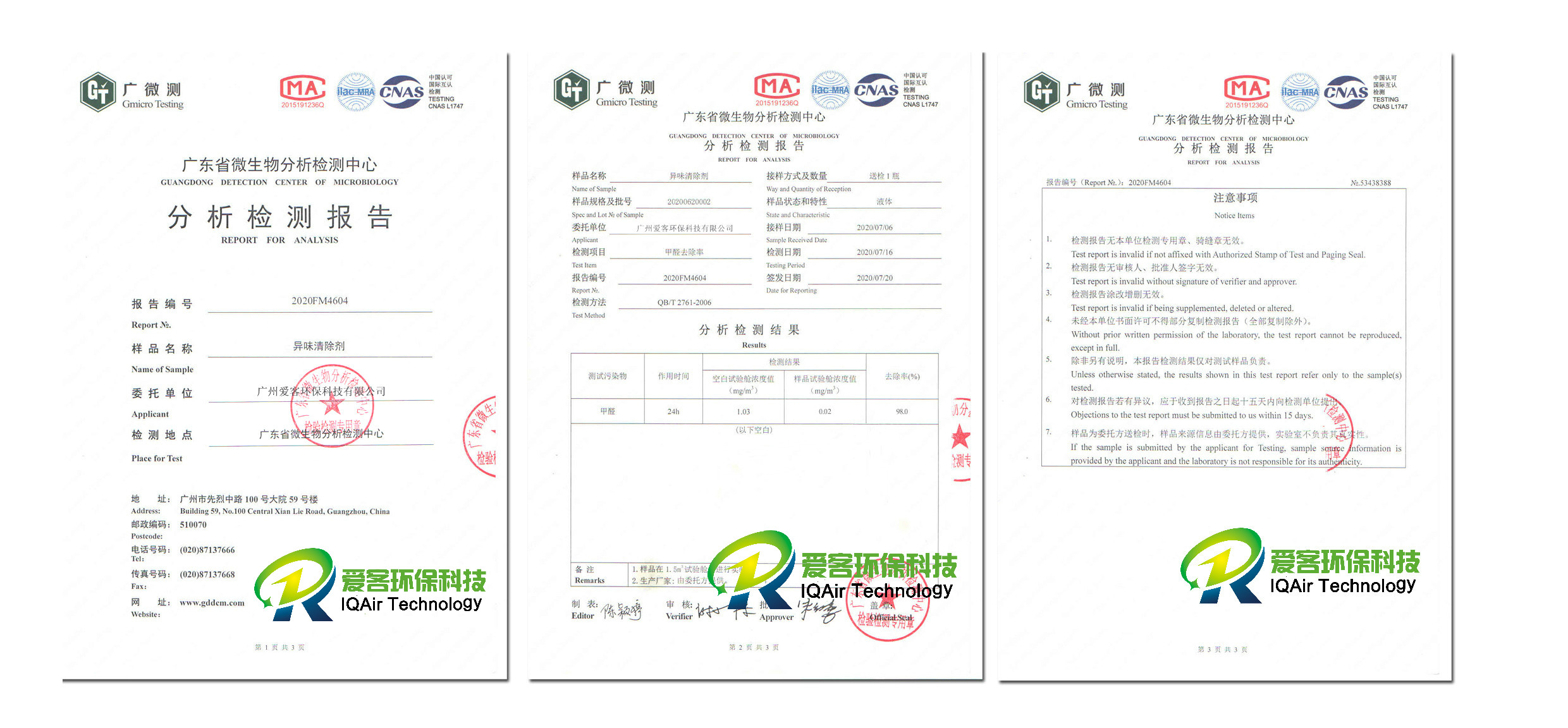 異味清除劑檢測(cè)報(bào)告