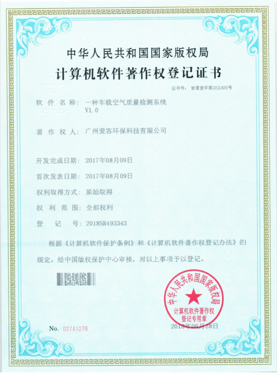 車載空氣質量檢測系統軟著證書